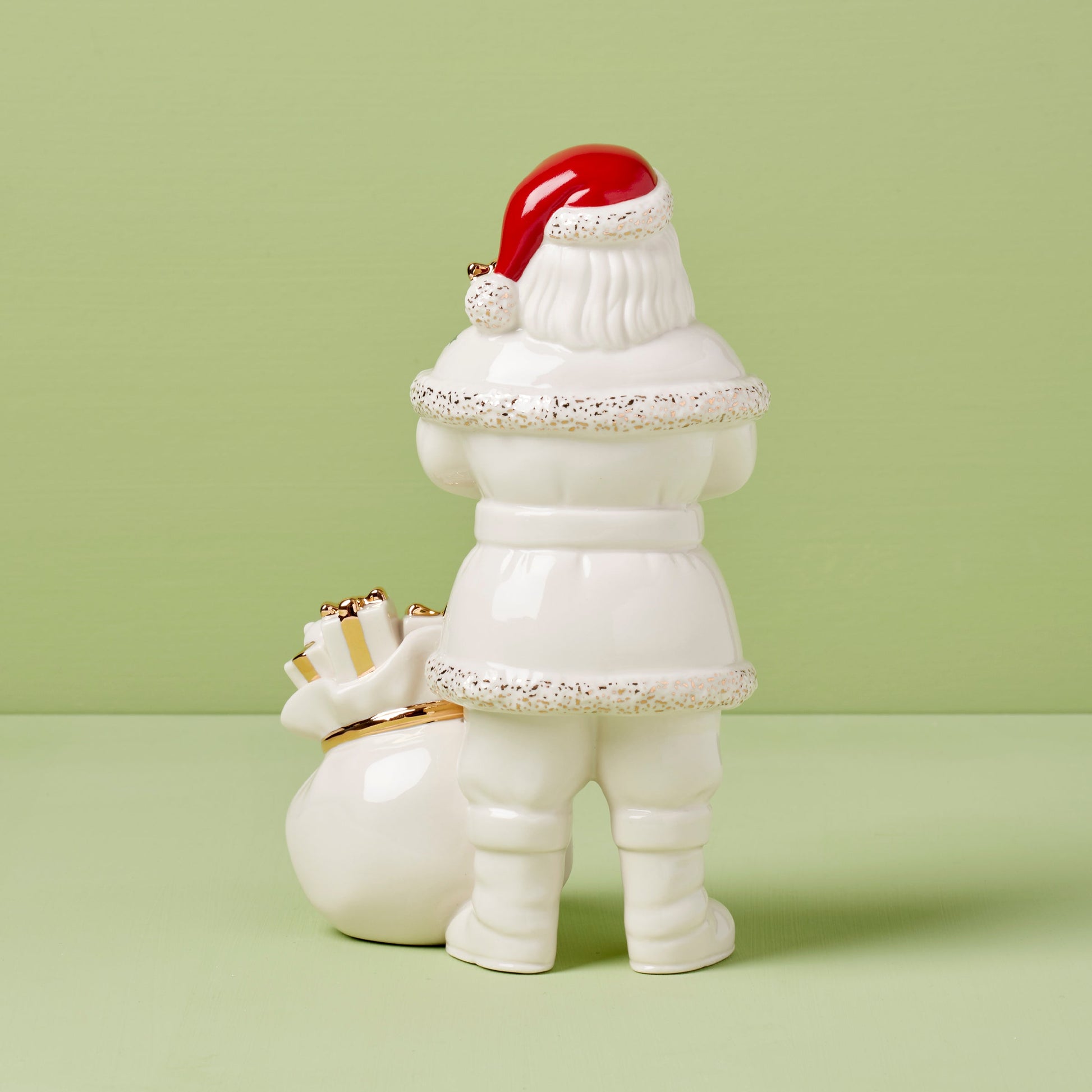 Un cadeau pour toute la famille ! Cette figurine festive représente un Père Noël en porcelaine qui apporte des cadeaux aux reflets dorés. Sa robe est ornée d'un motif de houx et il est prêt à apporter l'esprit de Noël dans n'importe quel espace de réception. Dans ses mains, il tient des cadeaux élégamment emballés et, à côté de lui, un joyeux sac rempli de cadeaux supplémentaires.