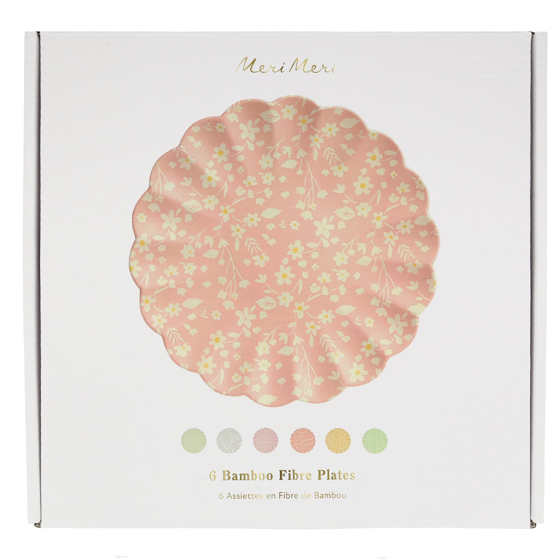 Ces assiettes en fibre de bambou aux magnifiques fleurs sont réutilisables, parfaites pour les fêtes. Apportez une touche florale à votre table avec cette merveilleuse combinaison de moutarde douce, de bleu, de lilas poudré, de menthe, de menthe pâle et de pêche. De Meri Meri, une marque que nous adorons.