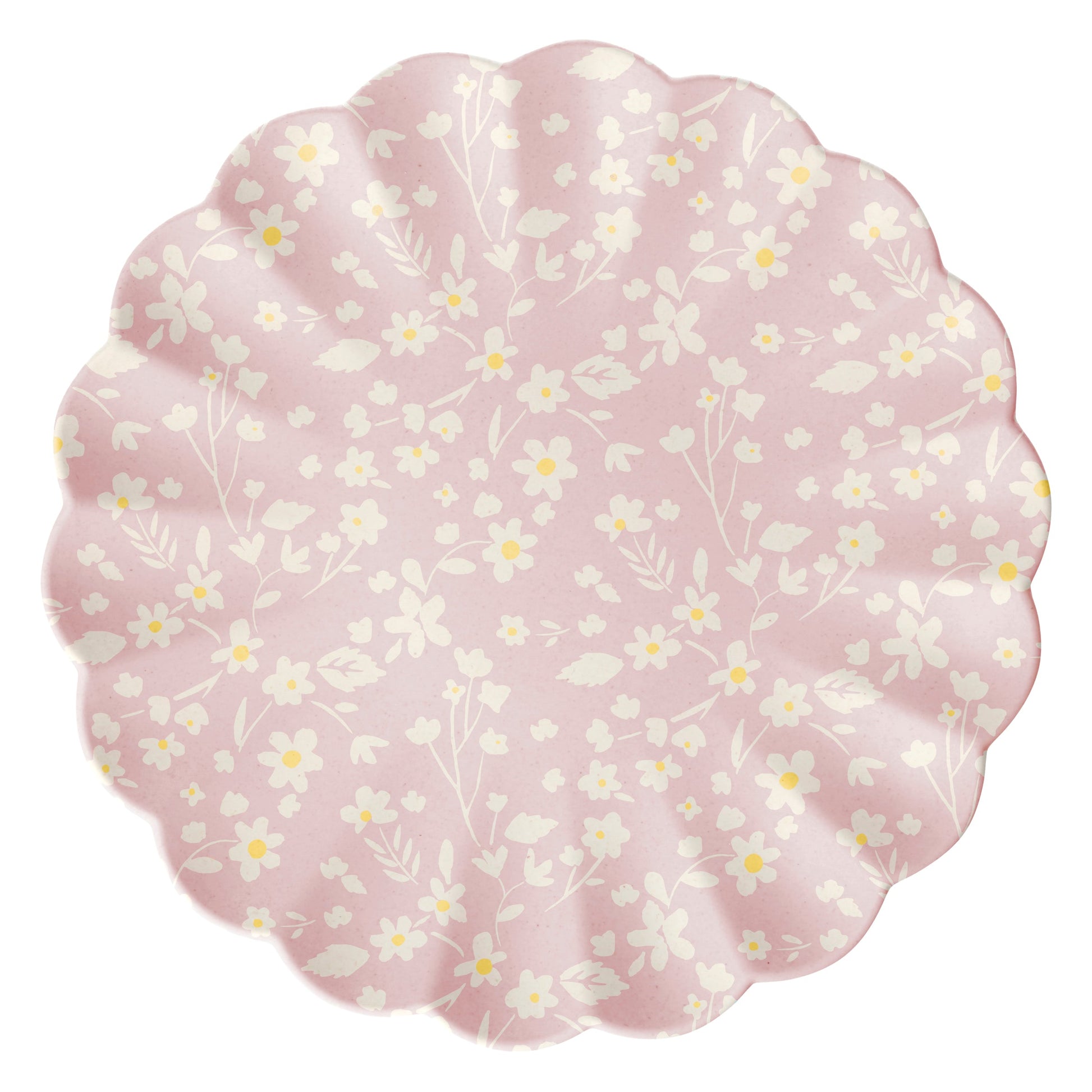 Grandes assiettes réutilisables en bambou à motif floral, lot de 6
