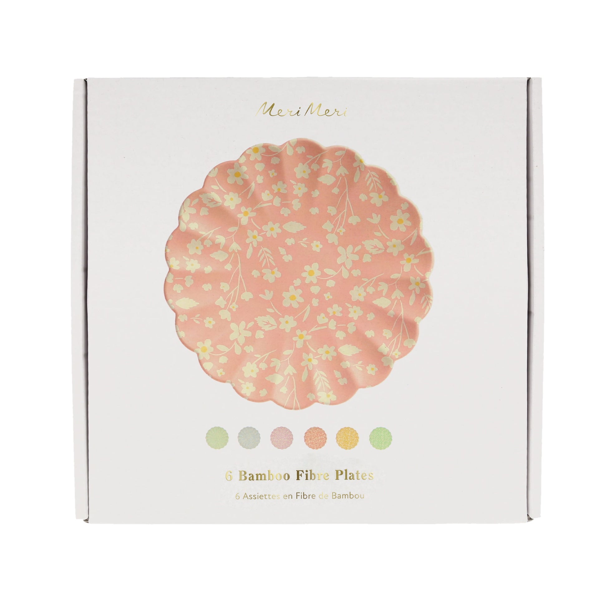 Ces assiettes en fibre de bambou aux magnifiques fleurs sont réutilisables, parfaites pour les fêtes. Apportez une touche florale à votre table avec cette merveilleuse combinaison de moutarde douce, de bleu, de lilas poudré, de menthe, de menthe pâle et de pêche. De Meri Meri, une marque que nous adorons.