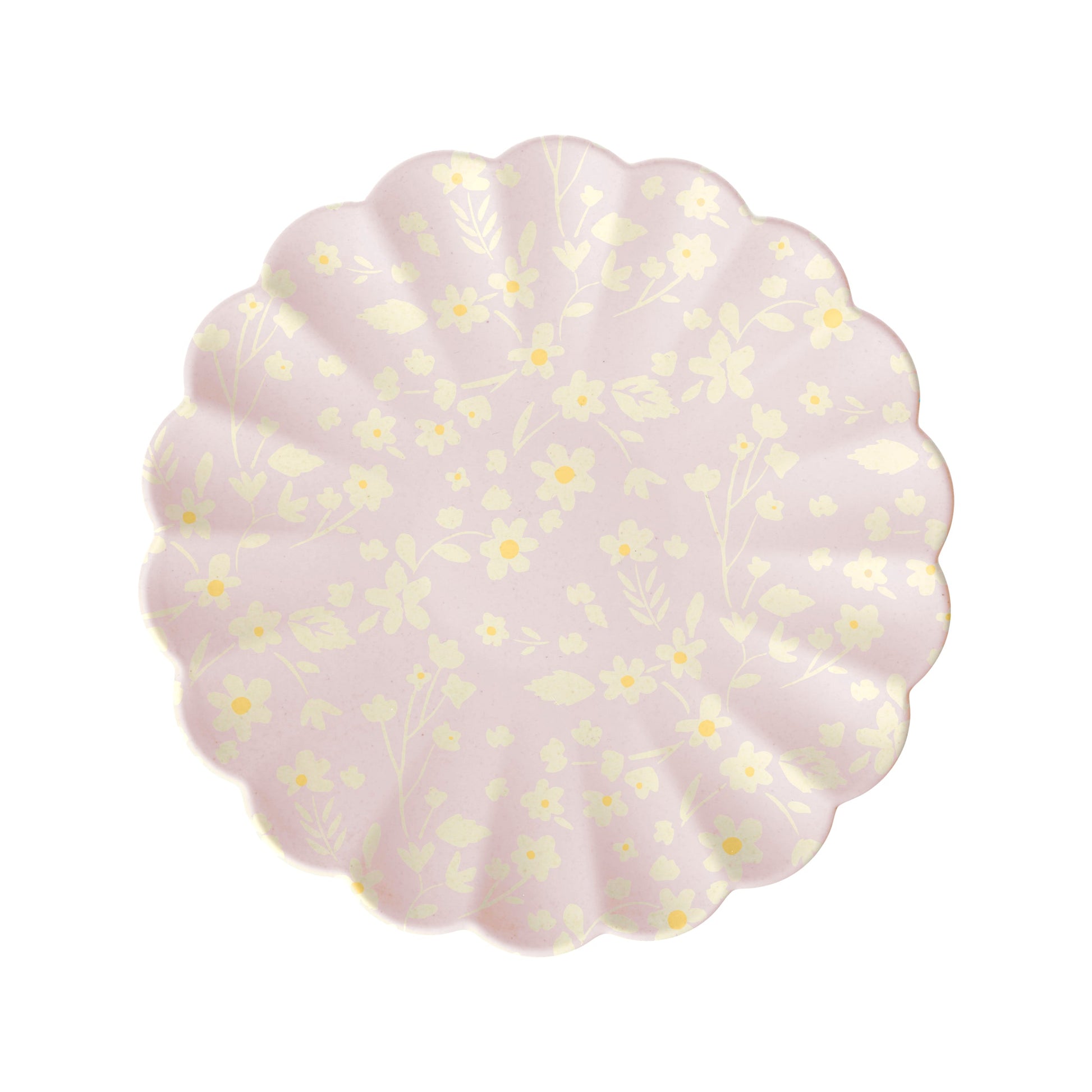 Petites assiettes réutilisables en bambou à motif floral, lot de 6