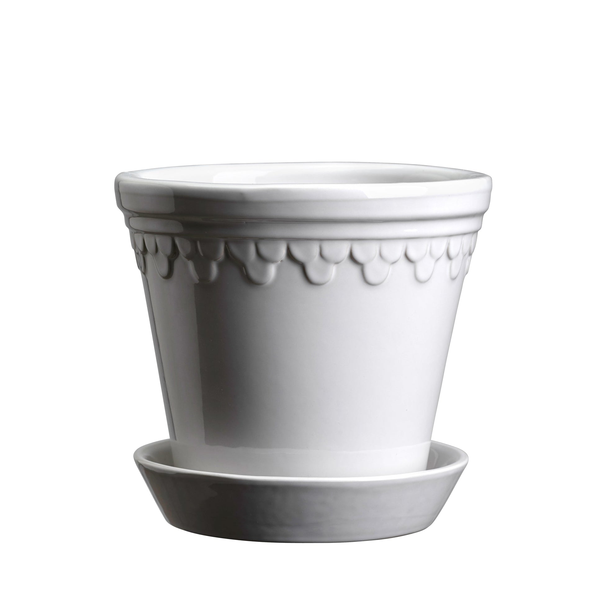 Pot minéral émaillé blanc de 16 cm avec soucoupe Kobenhavner