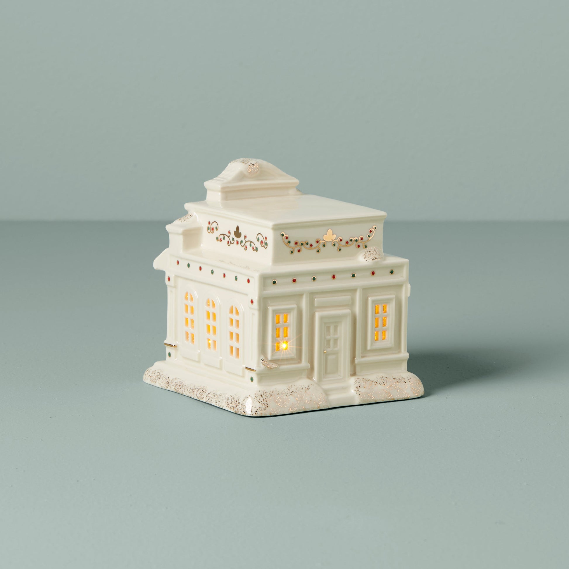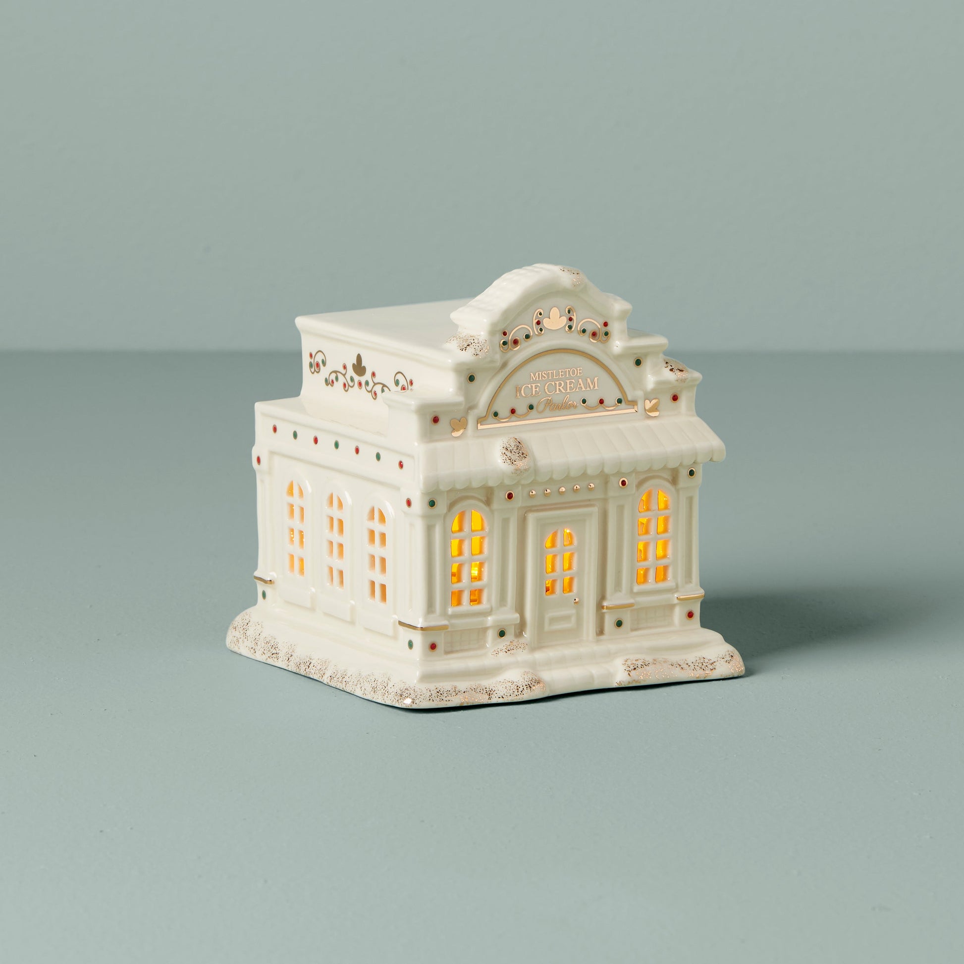 Cette figurine lumineuse en porcelaine crémeuse est doucement illuminée de l'intérieur pour créer une atmosphère chaleureuse. Représentant un charmant glacier, elle est décorée à la main avec des touches d'or 24 carats pour une finition éclatante. Un ajout charmant à votre collection Mistletoe Park Village Traditions.
