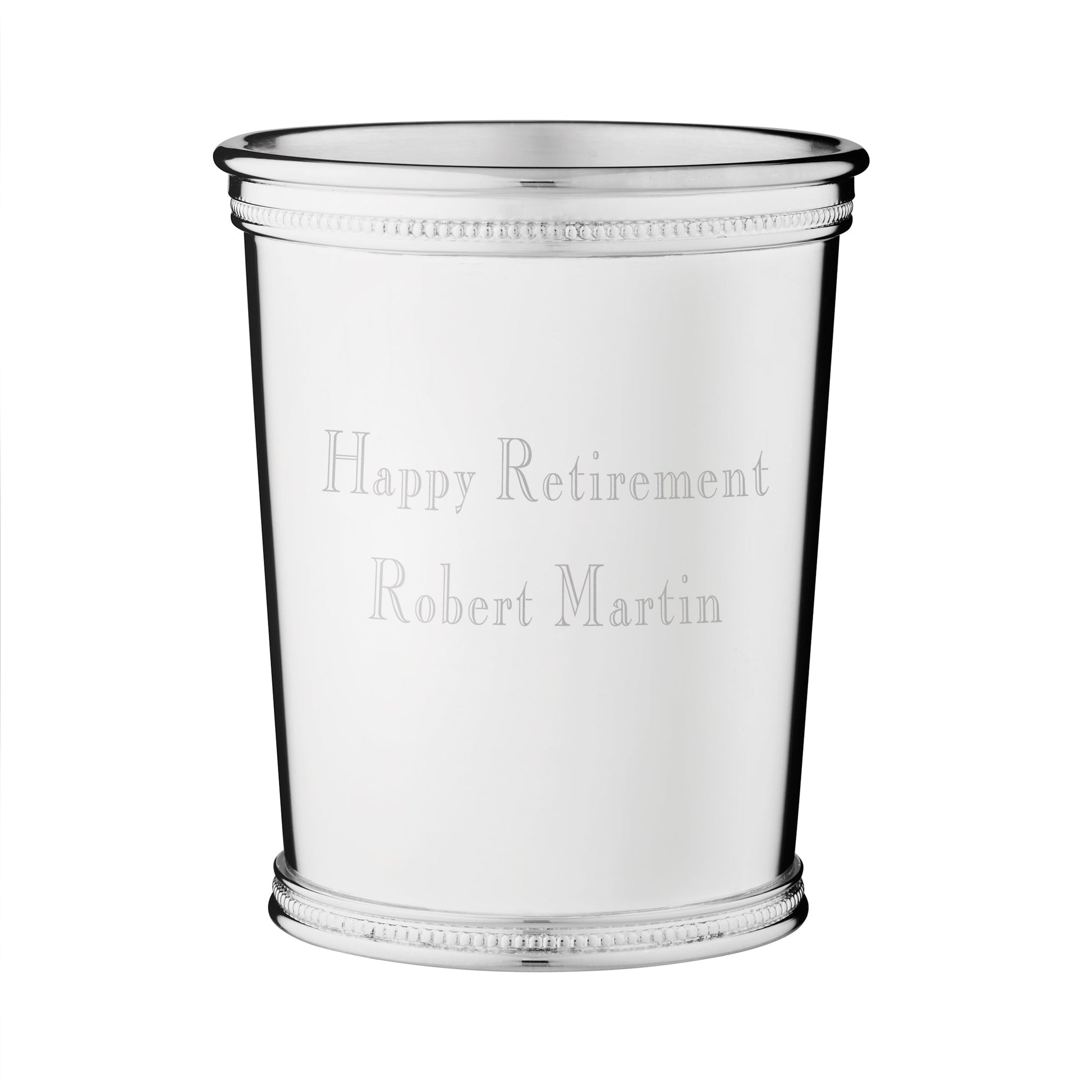 Tenu uniquement par les bords supérieurs et inférieurs, le Kentucky Julep Cup de Reed & Barton doit son nom à la boisson populaire du Kentucky Derby. Ce gobelet à julep en métal argenté est un merveilleux cadeau pour les invités d'un mariage, la fête des Pères et bien plus encore. Son emballage élégant est idéal pour offrir.