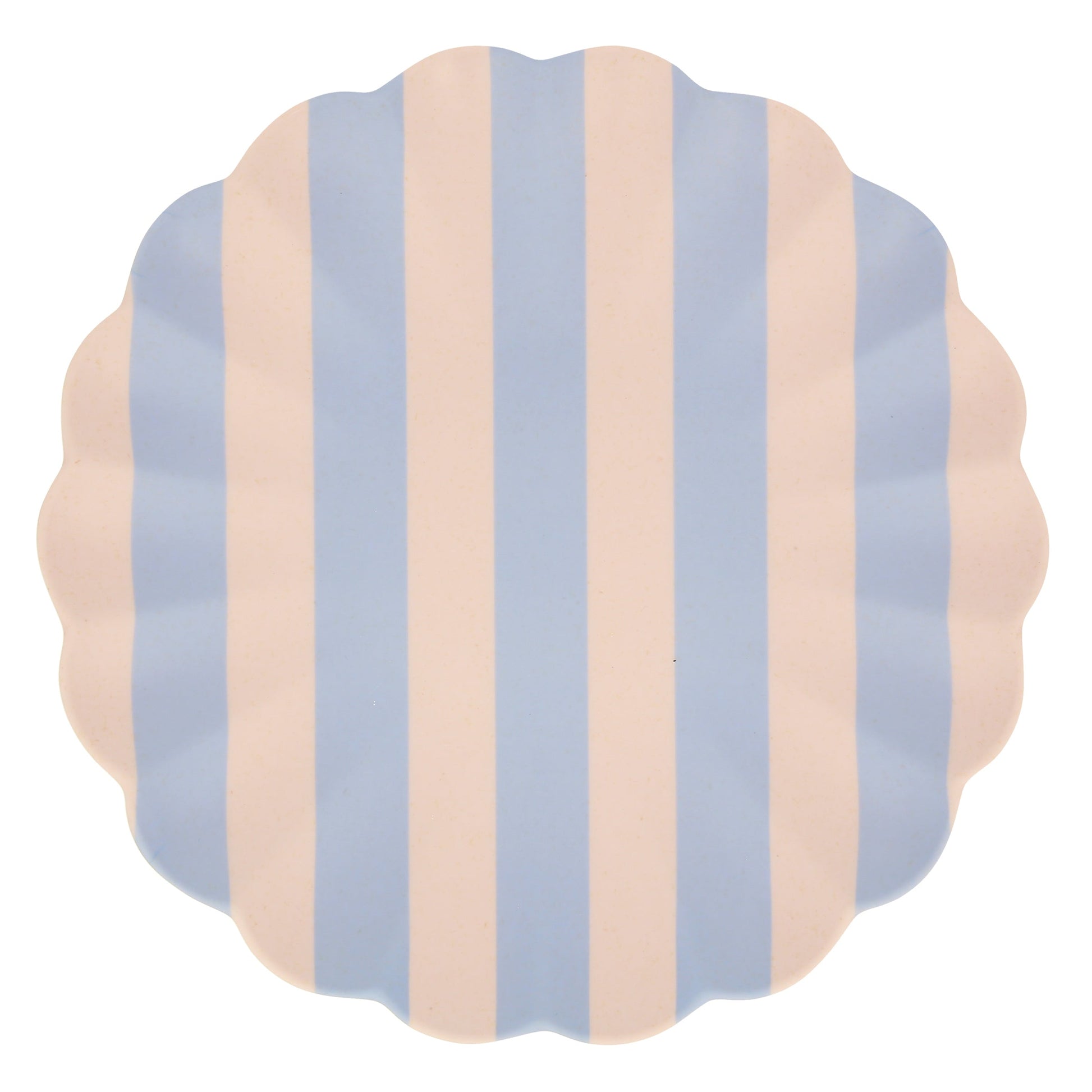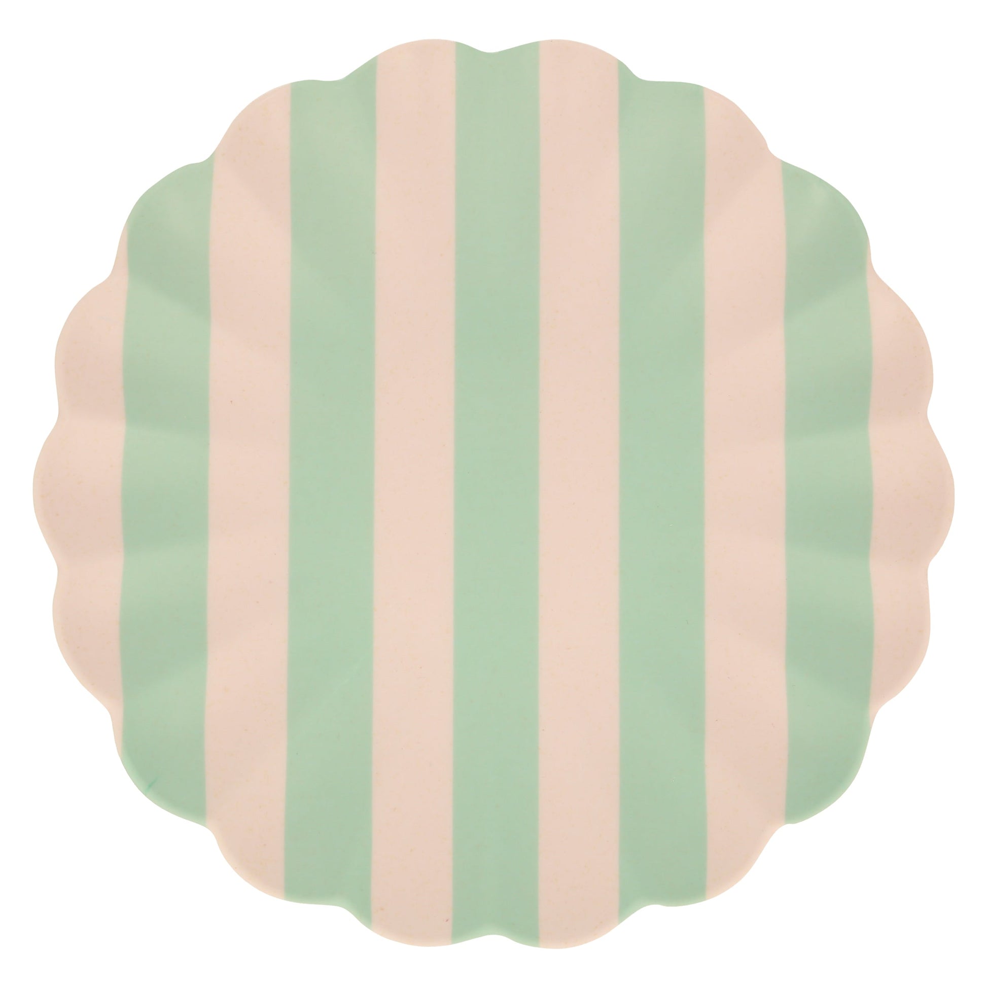 Grandes assiettes réutilisables en bambou rayé, lot de 6